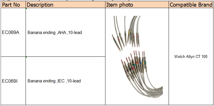 Съвместим проводник Welch Allyn CT 100 ecg, 10-проводник, свържете EKG кабел