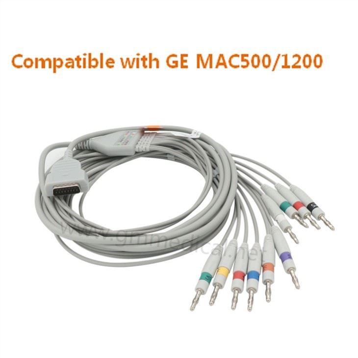 Кабел от EKG и 10-водещи оловни канали съвместими с GE MAC500/1200, AHA, Банан