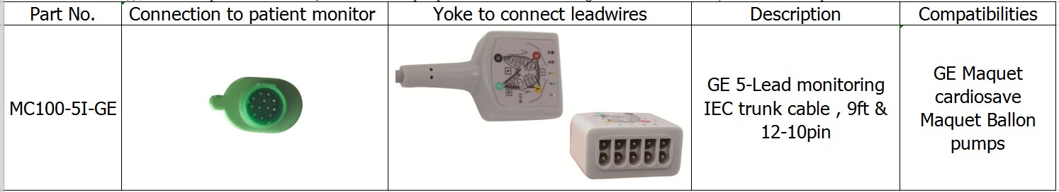 Съвместими балонни помпи GE MAQUET 5-оловен мониторинг IEC кабел на багажника, 9FT и 12-10pin