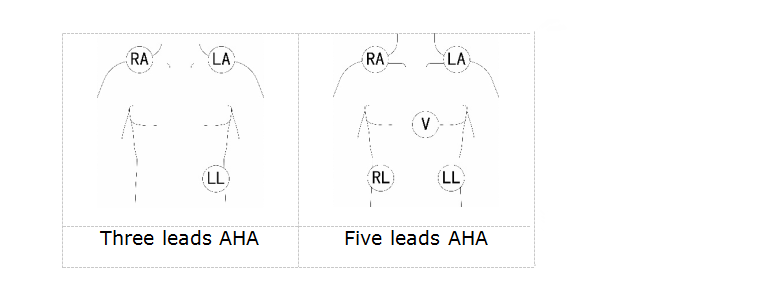 Типът на свързване на електрода върху човешкото тяло, както е посочено по-долу