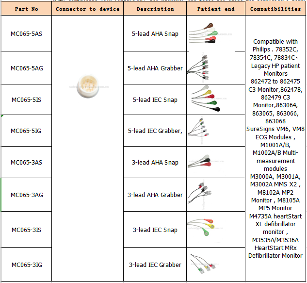 „Съвместим с Philips. 78352C, 78354C, 78834C , Legacy HP Монитор за пациент 862472 до 862475 C3 Монитор, 862478, 862479 C3 Монитор, 863064, 863065, 863066, 863068 SureSigns VM6, VM8 ECG модули, M1001A / B, M1002A / B, M1002A измервателни модули M3000A, M3001A, M3002A MMS X2, M8102A MP2 монитор, M8105A MP5 монитор M4735A heartStart XL дефибрилаторен монитор, M3535A / M3536A HeartStart MRx дефибрилатор монитор "