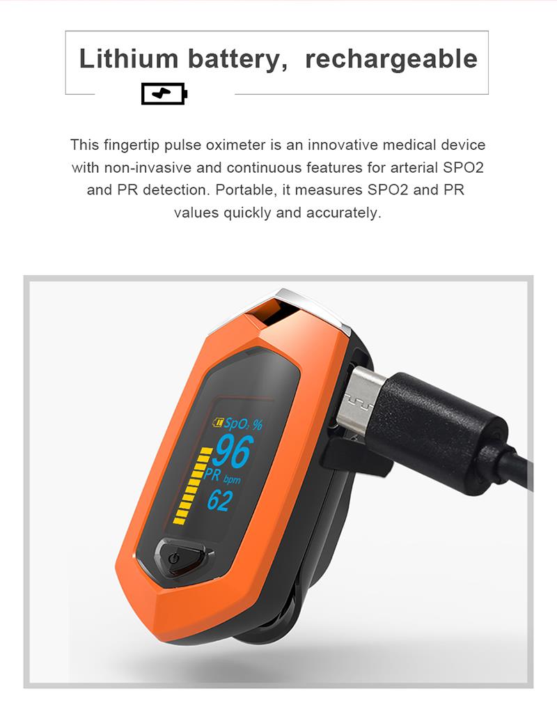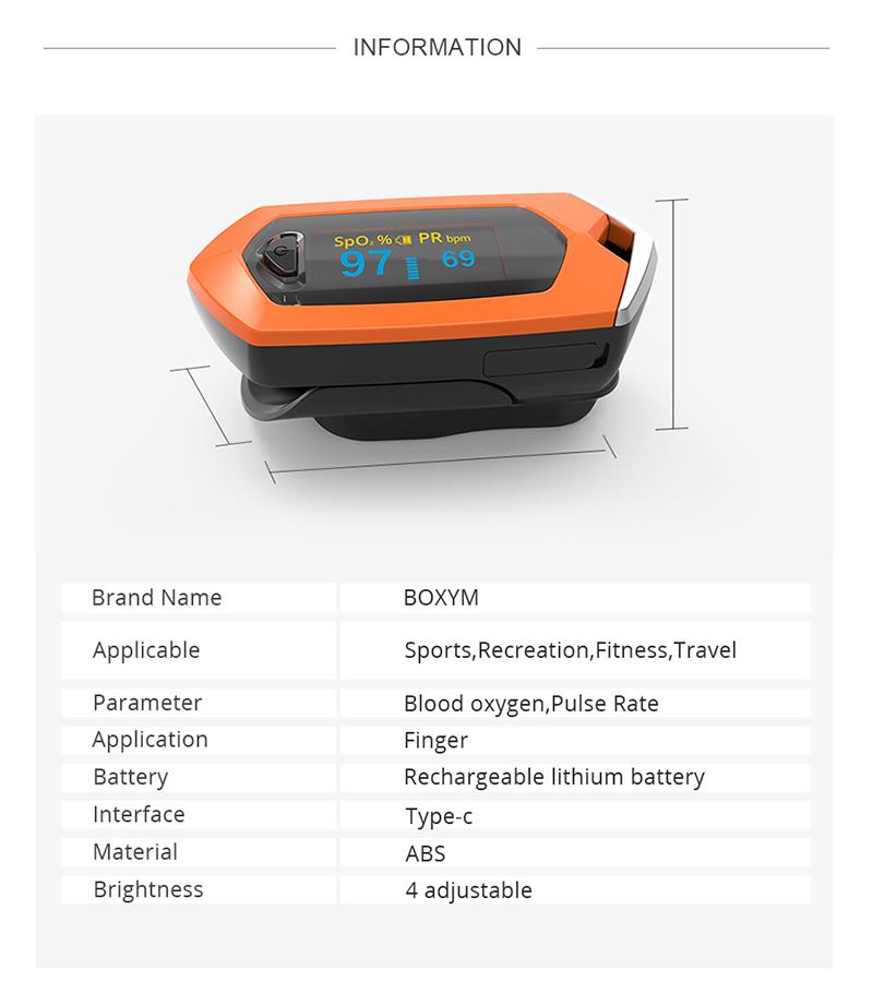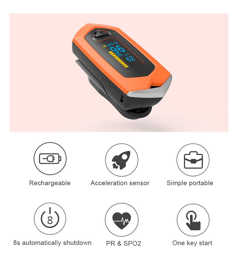 Една ключова звезда, може да се презарежда, сензор за ускорение, автоматично изключване на 8 секунди, измерване на PR и SPO2, прост преносим