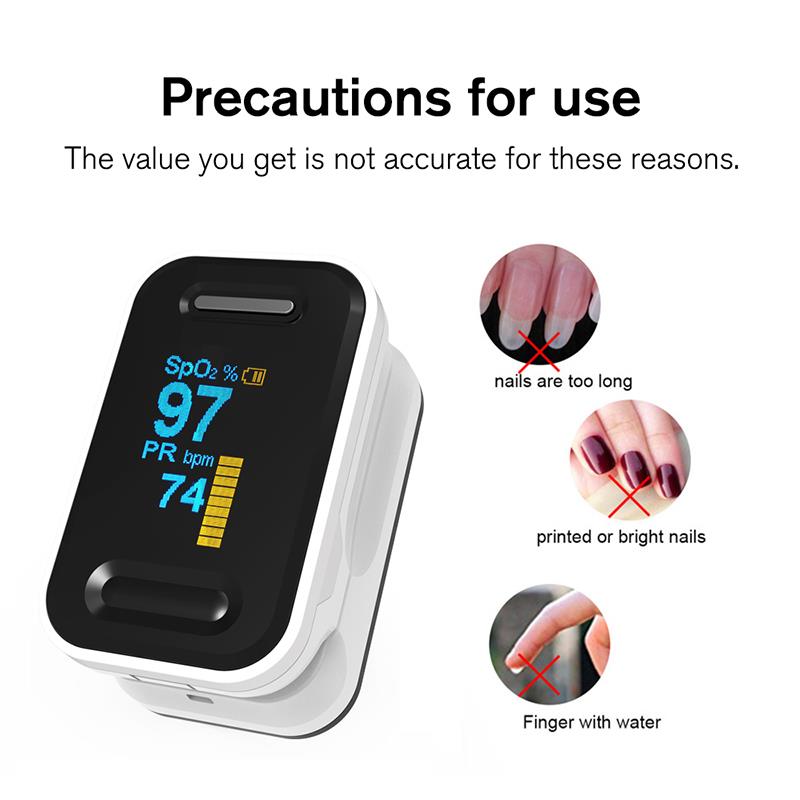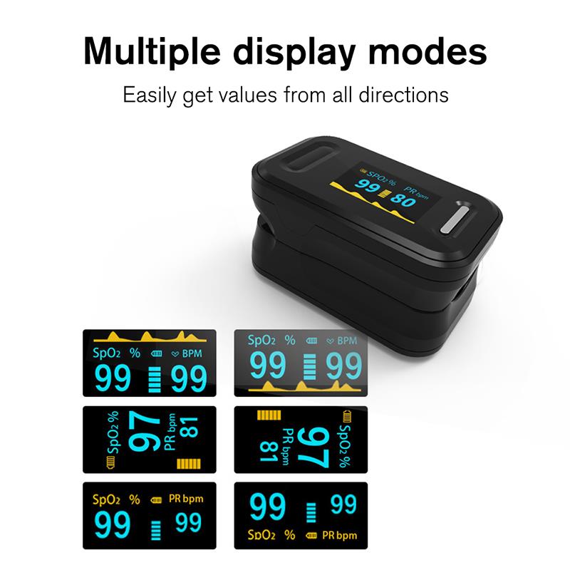 Пулсовият оксиметър за пръсти е достъпен и точен начин за проверка на пулсовите нива и нивата на насищане в кръвта с кислород. Показва и вълната на Plethysmograph, която гарантира точността. Самонастройваща се скоба за пръсти плюс проста конструкция с един бутон позволява лесна работа. Предлага се с чанта за носене и шнур / китка. Удобно за медицинска сестра и лекар да виси на врата. Малкият преносим размер го прави лесен за работа и носене. Подходящ за ежедневна употреба, измервайте здравето си по всяко време.
