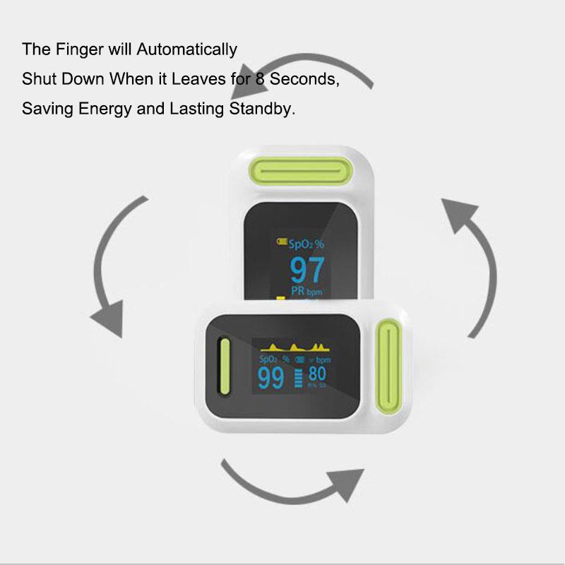Пулсовият оксиметър за пръсти е достъпен и точен начин за проверка на пулсовите нива и нивата на насищане в кръвта с кислород. Показва и вълната на Plethysmograph, която гарантира точността. Самонастройваща се скоба за пръсти плюс проста конструкция с един бутон позволява лесна работа. Предлага се с чанта за носене и шнур / китка. Удобно за медицинска сестра и лекар да виси на врата. Малкият преносим размер го прави лесен за работа и носене. Подходящ за ежедневна употреба, измервайте здравето си по всяко време.