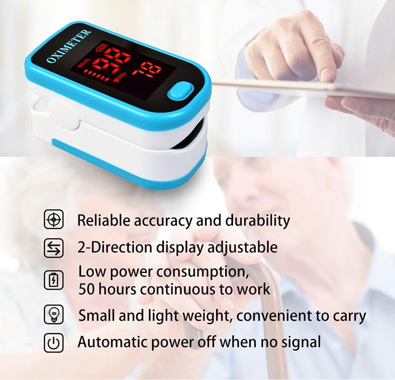 Пулсовият оксиметър за пръсти е достъпен и точен начин за проверка на пулсовите нива и нивата на насищане в кръвта с кислород. Показва и вълната на Plethysmograph, която гарантира точността. Самонастройваща се скоба за пръсти плюс проста конструкция с един бутон позволява лесна работа. Предлага се с чанта за носене и шнур / китка. Удобно за медицинска сестра и лекар да виси на врата. Малкият преносим размер го прави лесен за работа и носене. Подходящ за ежедневна употреба, измервайте здравето си по всяко време.