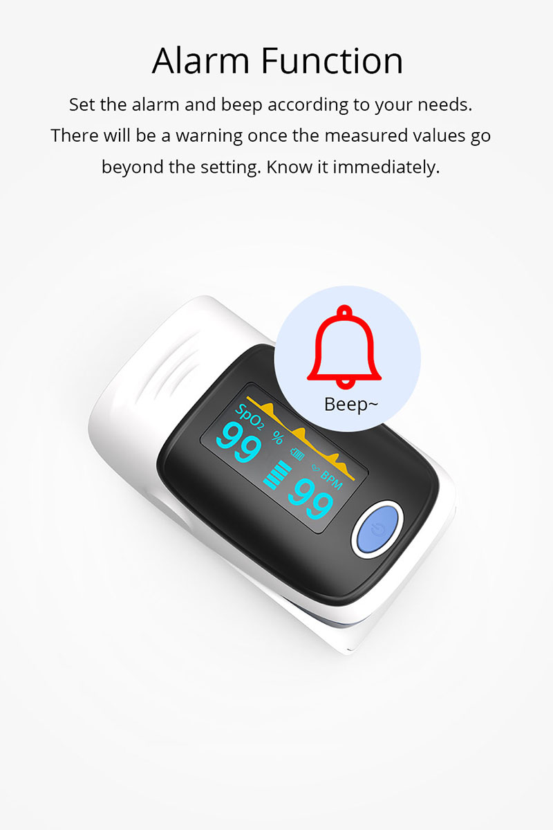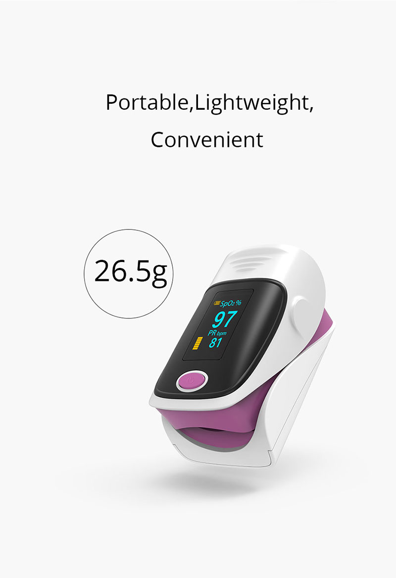 Пулсовият оксиметър за пръсти е достъпен и точен начин за проверка на пулсовите нива и нивата на насищане в кръвта с кислород. Показва и вълната на Plethysmograph, която гарантира точността. Самонастройваща се скоба за пръсти плюс проста конструкция с един бутон позволява лесна работа. Предлага се с чанта за носене и шнур / китка. Удобно за медицинска сестра и лекар да виси на врата. Малкият преносим размер го прави лесен за работа и носене. Подходящ за ежедневна употреба, измервайте здравето си по всяко време.