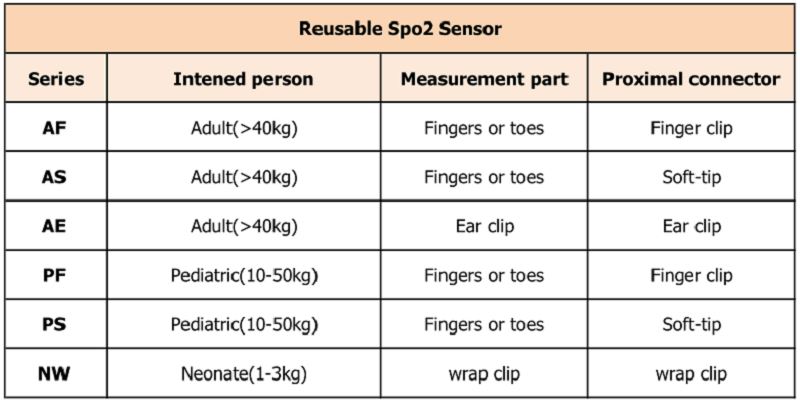 (PF&PS сериал) Големият датчик за многократна употреба spo2 е свързан със съвместимия пулсов оксиметър за непрекъснат неинвазивен мониторинг на функционалното кислородно насищане на артериалния хемоглобин (SpO2) и пулс (PR) за педиатрични пациенти с тегло 10-50 кг